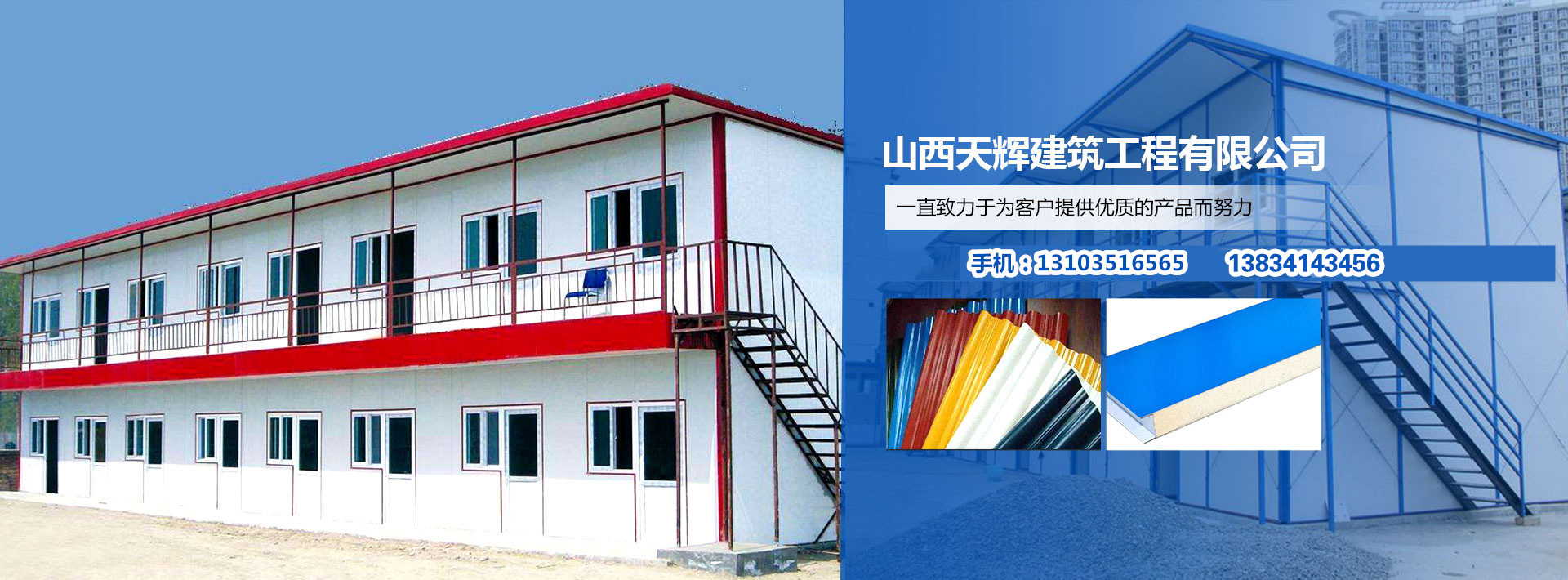 山西天輝建筑工程有限公司是專業(yè)從事彩鋼板生產(chǎn),鋼結(jié)構(gòu)、住人集裝箱、活動房設(shè)計和專業(yè)安裝、維護的一家企業(yè),我們銷售的產(chǎn)品引進全自動彩鋼夾芯板流水線以銷售多種規(guī)格的彩鋼復合夾芯板...